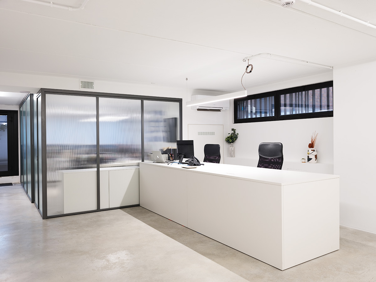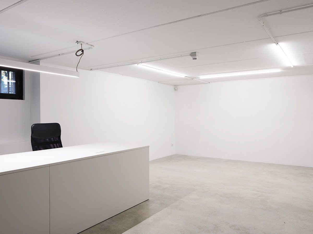 Lo spazio è articolato in due sale espositive per un totale di 65mq più corridoi, un desk molto ampio con doppia postazione in sala, servizi, cucinino attrezzato e un piccolo magazzino d’appoggio e area fumatori esterna.