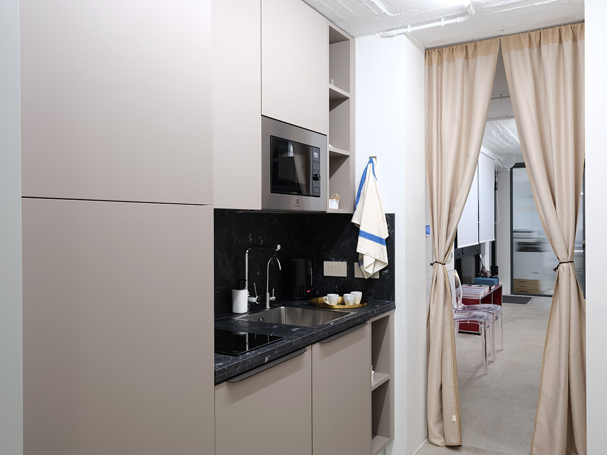 Ci troviamo nel piano seminterrato del residence & Hotel In CO99 Art Building, a Milano in Viale Corsica 99.